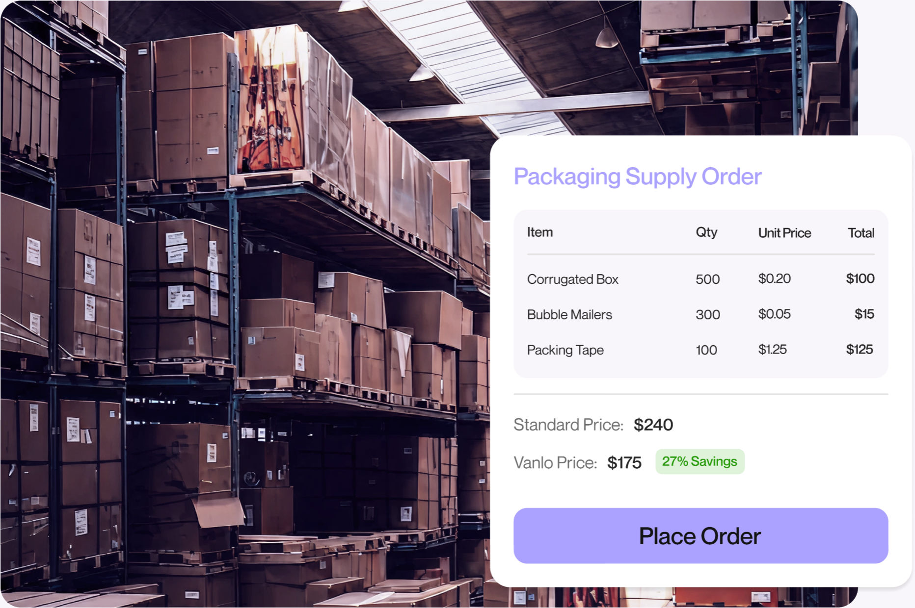 Vanlo secures the lowest prices on essential eCommerce packaging boxes, mailers, tape & more. Members save big on everything needed to pack, protect, and ship at scale.